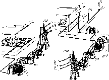Главная -> Области применения постоянного тока ![]() . 12.14. Схема ЛЁЛтроспабжечия прслыштетиго рхйи-кд ![]() Рис, 1115. Очгма члсвт>асна6-жечия примышленного npcji- ирияткя и далее ж расареле- лителышм пунЕгам ill 1де-хой прещцриялтд. ПрелС1ад-пение о свсгеме ?ле1ггроснай- Жснтля н электроойорудоваття промышленного предпрнягмя Mtiixain cociaBiTTb, ржкмоipcB прнмсрнунз длешрическую сжему рнс. 12.15 и соответствующий еЁ шшп расположения электрооборудования (рис. Генератор Г злеялричес4аэй станции шмрабвтынаеп: энгргчю прн напряжении 6, 10, 15, 24 кВ. Энергия постунае! к повьниаю-щсму 1ие4)орматору Т когорнй уовьтшаст напряжение др ни. 220, 400, 500, 750 к1*. Этгергнл высокого напряжения чегрсз BbiKjiioiaie-ib ВМ и разъедниитеи1ь Р с иомощью лнини .электропередачи ЛЭП поступасг в рлйопную распре дел нтелы1ую подстаьцию РПС. Oj распрсд1слнте,чьной иодстандин энергия с иомощыо кабеля илм нолдушнон линии передачи ЛЭП через разьедипнтедь Р н выключатель ВМ шхтупает к noHEsaroiue-щ трансформатору Гд центральною расгфсдеднтелыгого пункта ЛРП лромьоплашого предприятия, преобразукчще! о энер-пгю до наприжеиня 6, Ю, 25 кВ. От трансфсатора энергия посгупает на шшы распрвцыатсльного усгройстна РП и отту- ![]() нс IZ 16- План р>1сположснЕа электрсюборуловлиич систсми элестро-сЕаожепил npoMULuiieiinqro щждернятия да через соохнетсгиующую аппаратуру - в цеховой распреде-лн1е:1ьиый иуигт РП о котором э-гектряческаи знергнл с помощью 110нижа1ощсго трансформатора Т , иошисаегся до напряжений 127, 220, 330 или 500 В и поступает на шиыы РП. От тин РП энергия нодзюдится я натребитепям; двнгае-.iKM Д. лБсктрпческнм печам ЭП, осветительным приборам Ji и г. п. Рассмотрим iraananeifHe основных MChieuiOB системы тлек-тросиабжсння. Линия лсклрапередачн предпа1наяена ЛЛи iiitjaiH Jлcк-jpo epTHH от нсточшша к uoipeGurcjHo. При батыпих рас-СТОЯ1ГИЯУ она выполняется в виде аоиушной липни, в которой dHc-ргил передзетсч до голым ал10минаевы.ч или сталеадголш нисвым (иногда медным) проводам, подвешенным С помощью HaojiJTOpLJB I MCT:aji:JH4ccKHM или жедаоонншд □порам. На терршгорнн городов, рабочих поселков, лаиодов снабжение uoipi.-fimcicH осуществляется с помощью кабелей, п]1оложеш1ых в ifcvLiL в тралшсяк или сабедьньа каналах. Воз-Лтпные ЛНшШ 3 ?111А случаях ггредстаилялп бы существенную онаеностъ и соолазали бы большие нсуаобова д.1я грннсиорэа и т. д Сечение ироводиа линии иейтроперйпачч и потери монено сти S ней опрелеляотся ипдлснисм тока: Гакин образом, чен больше напр :енне, тем MCiH.mc ток, а елеловательно, сечение проподов и потерн мощеюсги V гроводак: где * - сопротивление проводов. Ддя нерелачя зпергни Аольгппн мощноетн иа 31[ачитсдьные расстояния пибирают 11Ш1ряжсние laKOJO JHa4e iHM, дрн котором патера HicpiHH, сюямость 1фовоиов и всел хементов опор, изоляторов п т. п.) линии хтектроперелачи окампаются HauMCHbuiiiMu. В 5олышшсгве cjjy4aed экойоыачеси выгодное паиряжение лныин электропередачи о азьтастся эналитольчо вълне наттряжепня знертни, вырабатьтвасмой гс[ераторами jjLCK-jpocTaiiUHii. Повишаюшин раисч10рмагор Служит ДЛЯ ПОВЫШення гснс-раюрпою ыапрнгения до необуоллмого виаченин папряжс[ня лнппи электропередачт. Поннжаюгцпе трансформаторы РП ааводов понижаю! на-пряжепнс до :1начсний, на hoi орыС рассчнчаыы заВйДСКИе потре-битс.щ. rioi-peCjfiejii малой н средней мошностн обычтгп вм-иолясны на оино ю craiijaprHbix напряжений: 220. 380 н 500 В. Л вгзте1ти большая моипссти, нанримср двшшстн компрессоров, наснлсов, воздуходувок, ирокагных